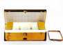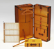 樺色ヴィトニット ピクニックケース 内装は黄橙色内張地。細かく区分されたトレイ2個を 内蔵。多種の銀食器を収納し、ドライブ時に使用と 思われる。蓋内張はスウェード。外装はヴィト ニット・スペシャルオーダー色でキーホールは アール・ヌーボー調。 |