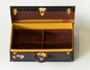黒ヴィトニット リブ付トランク ブルーのストライプが黒のヴィトニットにフランス 的。女性の靴用トランクと思われる。内装は茶色の フェルト。 |