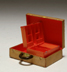 ヌメ革コスメトランク 外装はヌメ革、内張りは赤革タイガ仕様。トレイは ラッチ、ハンドル付で小ケースとしても使用可。 |