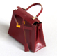モロッコ革 タイガ風型押しバッグ タイガ風仕上げ外装と濃臙脂色革の内張り。金色の |