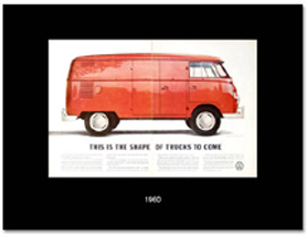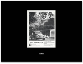 1950年代から1963年までのフォルクス・ワーゲン、ビートルとワゴンの広告159枚を収録。