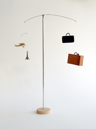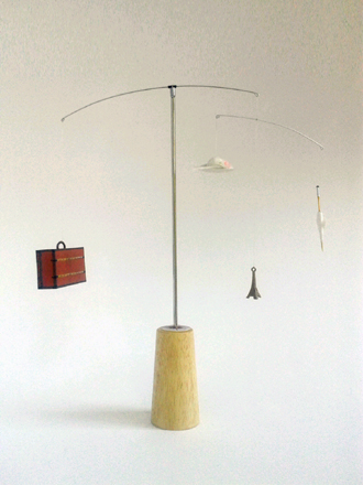 紙製傘、帽子と既成メタル製エッフェル塔